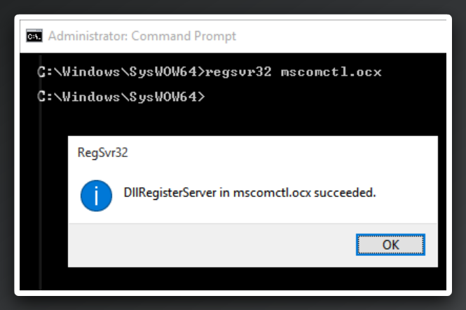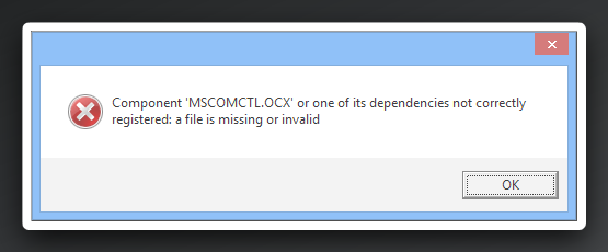 Component 'MSCOMCTL.OCX' or one of its dependencies not correctly registered: a file is missing or invalid