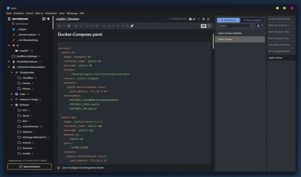 Ich nutze Joplin inzwischen seit über einem Jahr für meine komplette Dokumentation – egal ob technische Notizen, persönliche Ideen oder spontane Gedanken zwischendurch.