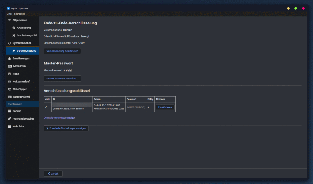 Und genau da kam Joplin ins Spiel. Open Source, aktiv weiterentwickelt, mit Apps für alle Plattformen – und vor allem: Synchronisation und Verschlüsselung sind direkt integriert.