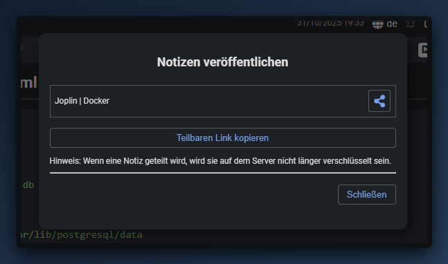 Joplin synchronisiert dann kurz mit dem Server und generiert einen öffentlichen Link.